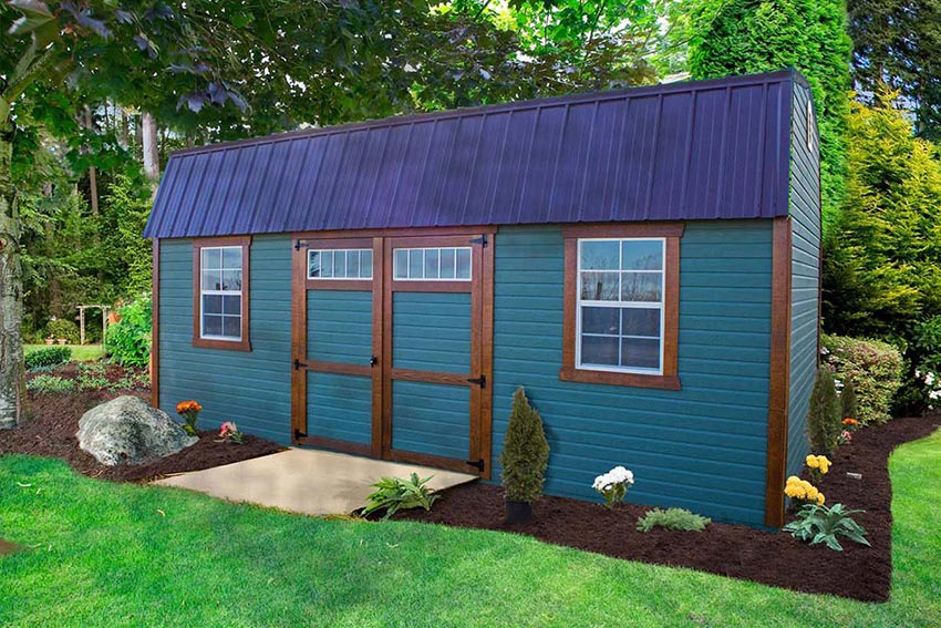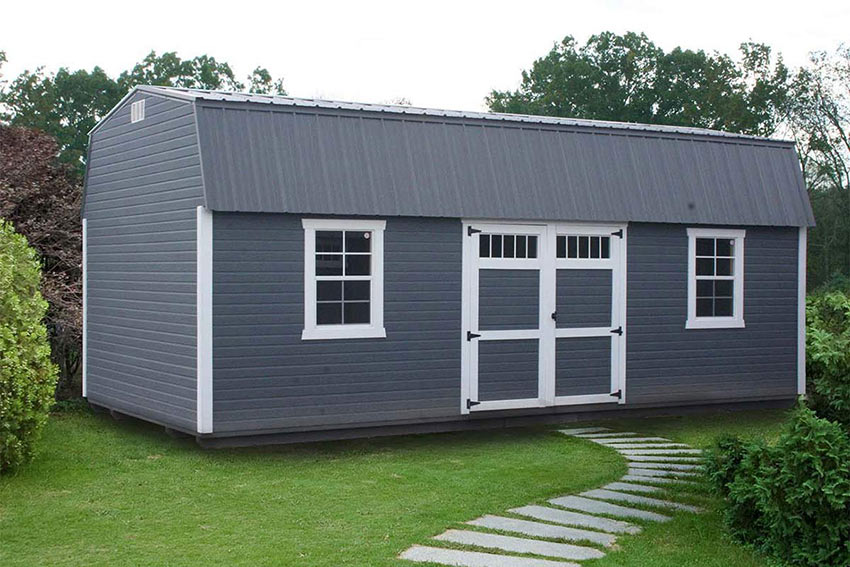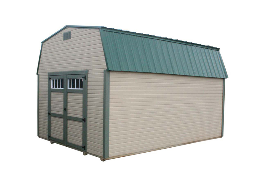 A tall gambrel-style roof with two overhead lofts affords ample storage. This popular barn will give you the extra square footage you need.