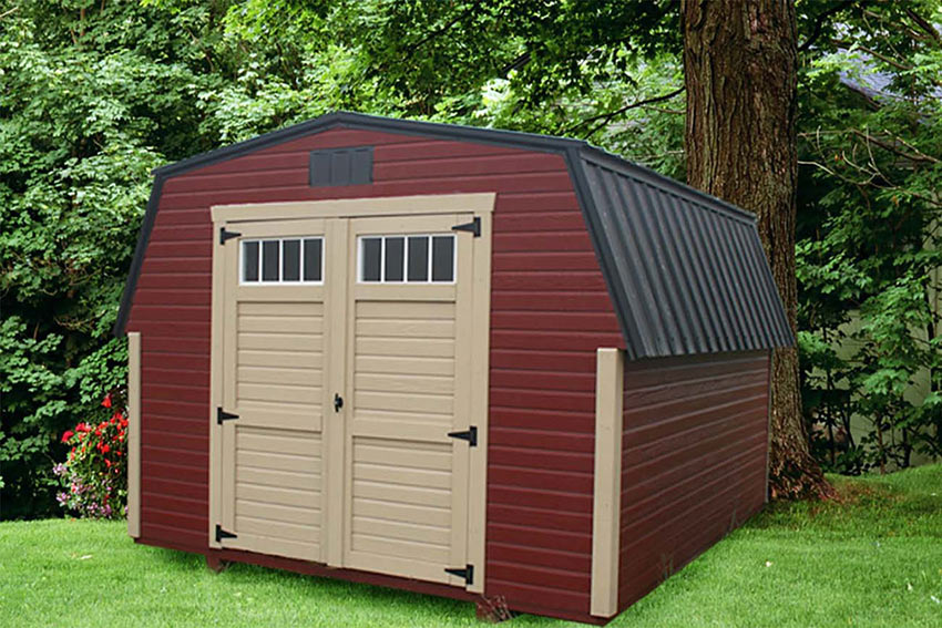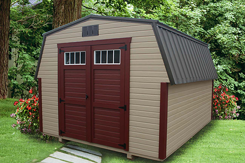 You’ll value our mini barns. Each is a pint-sized version of the ever-popular high barn shed. It’s perfect for small backyards and tight spaces.