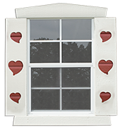 Wooden window shutters with heart cut-outs add a personal touch to the building. These shutters create a classy detail your neighbors are sure to notice.